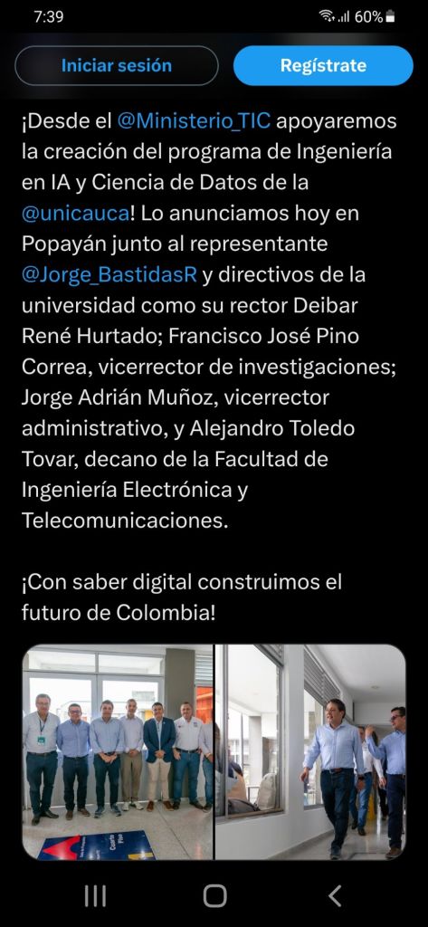 Te comparto esta gran noticia. Déibar René Hurtado Herrera. Rector Unicauca. Diciembre 11 de 2024
