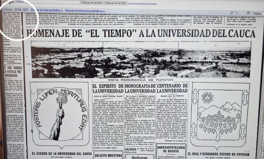 Universidad del Cauca en 1927