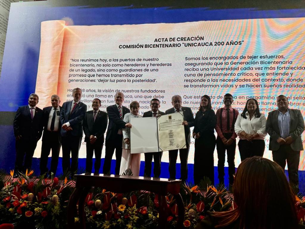 Jesús Helí Giraldo Giraldo firma el acta en calidad de presidente de Asecauca capítulo Bogotá. Universidad del Cauca, Popayán, 21 de noviembre de 2025Integrantes del comisión Bicentenario Unicauca 200 AÑOS