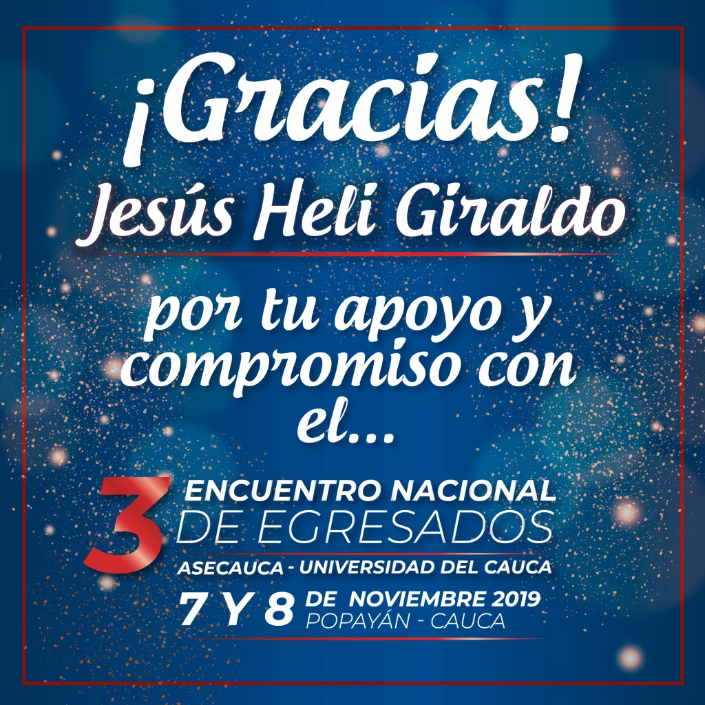 El desarrollo de este maravilloso tercer encuentro estuvo coordinado por la Oficina de Egresados de Unicauca en cabeza del Dr. Juan Carlos Varona, a quien expreso mis agradecimientos y reconocimiento por su dedicación y esmero en cada uno de los detalles, todo con gran éxito a pesar de lo exigentes que son, esos detalles, en un evento de esta naturaleza. Gracias a su equipo de trabajo, a Daniela Valencia y Clarena Casas, y a los demás miembros del Área de Egresados. Gracias a la oficina de Comunicaciones y a William Abella y su equipo, al vicerrector académico, Dr. Luis Guillermo Jaramillo, y a todos los directivos y empleados universitarios de Unicauca por acogernos y reunirnos en Popayán y a Asecauca, presidida por el ingeniero Carlos Manquillo, por ser parte de la organización.